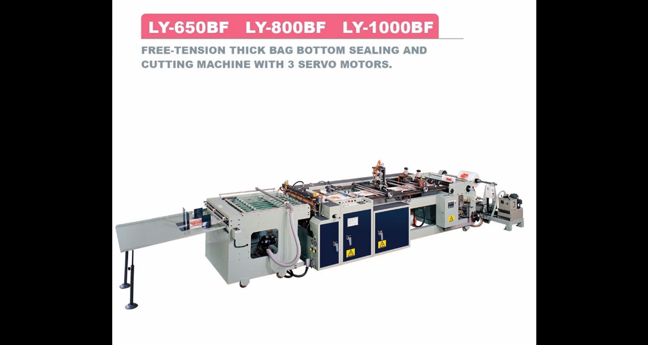 LY-650BF/800BF/1000BF series are free-tension heavy duty bag making machine, its 3-sets servo control system allowing customer to make very thick bag with good quality of sealing. All series have HMI system for easy operation.